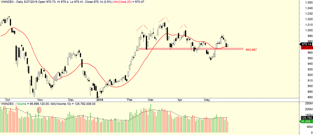 [Nhịp đập thị trường 27/5/2019] Khoảng trống thông tin, các dòng thay nhau đỡ thị trường. Hôm nay là ngân hàng, dầu khí.