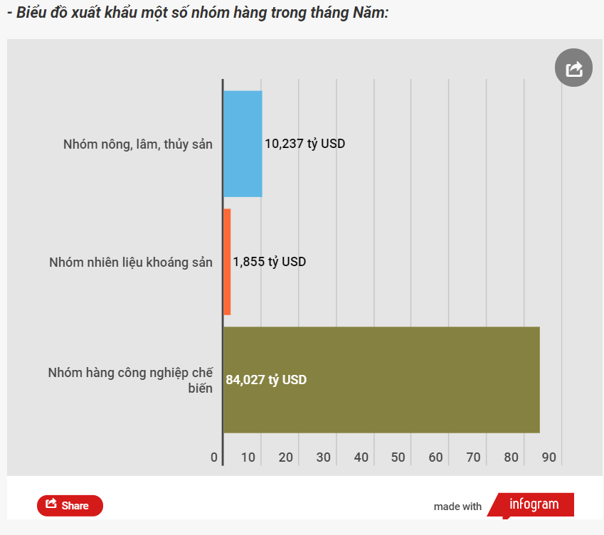 – Biểu đồ xuất khẩu một số nhóm hàng trong tháng Năm: