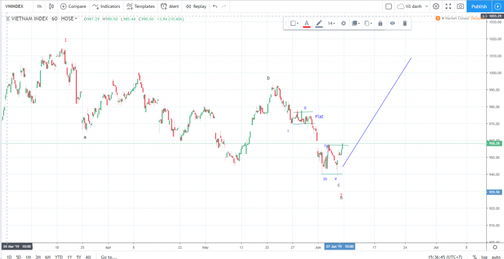Theo mô hình sóng Elliot, sóng c có thể đã kết thúc khi tôi kiểm tra chi tiết cấu trúc sóng bên trong. Sóng v có thể đã tạo đáy kép với đáy iii. Điều này sẽ được confirm nếu như chỉ số VN-Index tiếp tục tăng điểm vào ngày thứ 2 tới.