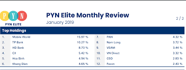 Tại thời điểm cuối tháng 5, giá trị danh mục của quỹ đạt 387 triệu EUR, trong đó bao gồm 6% tiền mặt và 94% cổ phiếu. Trong top danh mục của Pyn Elite Fund, MWG tiếp tục là cổ phiếu chiếm tỷ trọng lớn nhất với 16,39%, tiếp theo lần lượt là TPB (11,67%), HDB (8,51%), CII (5,89%), VEA (5,84%)…