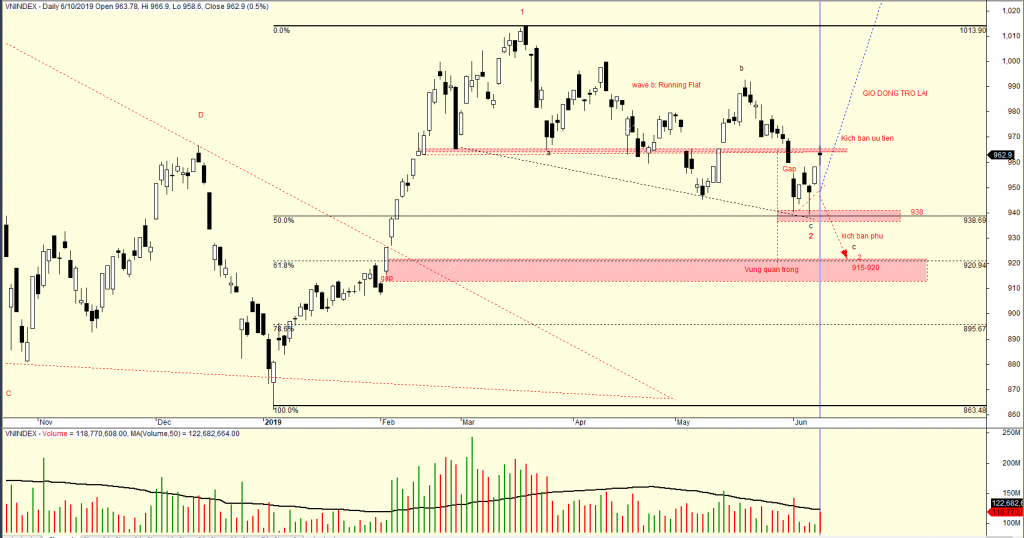 Không cần phải bàn cãi, 963 đang là điểm kháng cự rất dễ thấy. Đó là đường viền cổ (neckline) của mẫu hình vai đầu vai, từng bi phá thủng vào những ngày cuối tháng 5. Vì vậy, khi thị trường tăng điểm, 963 trở thành điểm kháng cự.