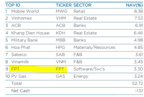 + FPT đang xuất hiện mạnh trong danh mục của quỹ VEIL trong tháng 5.2019