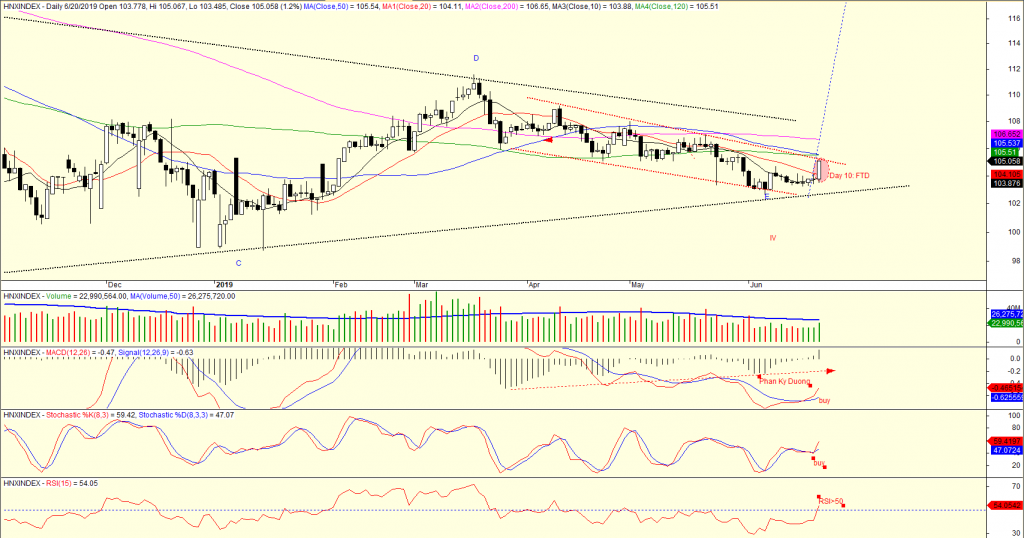 Không phải VN-Index, chính HNX-Index là chỉ số thị trường đầu tiên xác nhận xu hướng thị trường tăng giá bằng Ngày Bùng Nổ Theo Đà (FTD). Ngày FTD xuất hiện ở Ngày 10, tuy khá muộn hơn so với thường lệ nhưng vẫn năm trong khung thời gian cho phép.