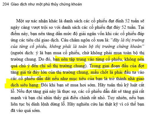 Trong cuốn sách “Giao Dịch Như Một Phù Thủy Chứng Khoán”, phù thủy Mark Minervini cho rằng “bạn nên tập trung vào từng cổ phiếu, không nên quá chú ý đến chỉ số thị trường chung. Trong giai đoạn đầu của đợt tăng giá từ đáy lớn của thị trường chung, mấu chốt là phải đầu tư vào các cổ phiếu dẫn dắt nếu như mục tiêu của bạn là trở thành nhà giao dịch siêu hạng.“