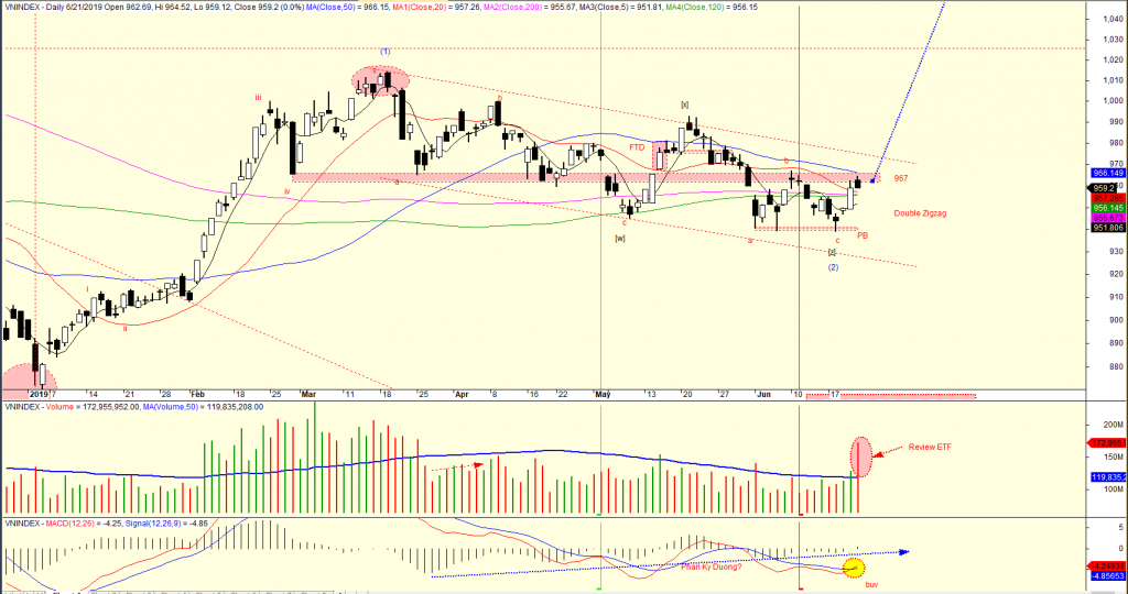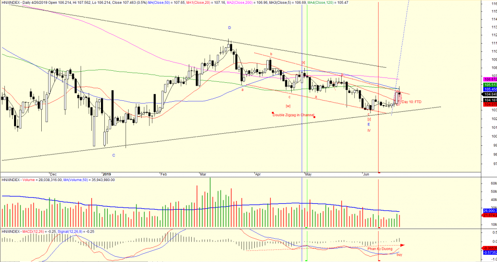 Hãy lưu ý, đang có sự phân kỳ giữa các chỉ số. Trong khi VN-Index re test lại đáy vào ngày 6/6/2019 thì HNX-Index không tạo đáy sâu hơn ngày này. Sự phân kỳ của các chỉ số là dấu hiệu để tôi nhận biết sự kết thúc của một giai đoạn điều chỉnh.
