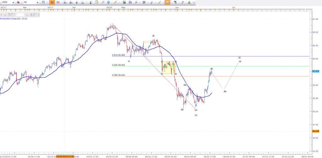 Tin vui là tổng thống Trump đã hủy quyết định tấn công Iran vào phút chót. Giá dầu thế giới vì thế có thể có nhịp điều chỉnh theo sóng b trong sóng 2.