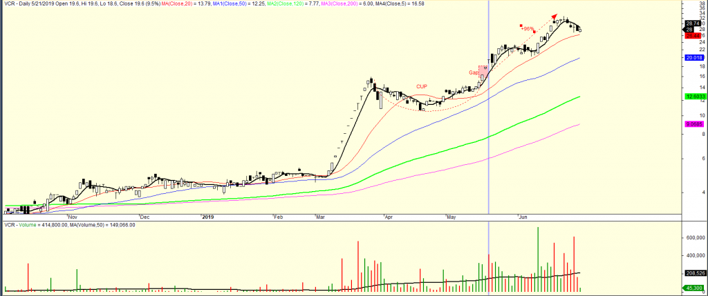 Hãy nhìn lại cổ phiếu tăng trưởng mạnh nhất sàn trong 3 tháng gân đây. VCR. Báo cáo tài chính của công ty này vẫn đang ghi nhận con số âm trong năm 2018. Nhưng vấn đề là cổ phiếu này lại hình thành mẫu hình chiếc cốc. Sau khi tạo điểm phá vỡ bằng khoảng trống, VCR tăng tới 96% trong vòng chưa đầy 2 tháng. Kỳ vọng của VCR chính là dự án tỷ đố ở Đảo Cát Bà