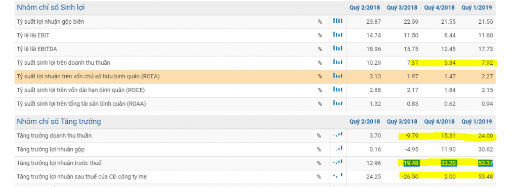 Tôi nhìn thấy code 33 ở VGC. Tăng trưởng lợi nhuận từ âm sang dương; -26.50%; 2% và 53%. Tăng trưởng doanh số là -9.8%; 15% và 24%. Trong khi đó biên lợi nhuận ròng của hai quý gần nhất hồi phục từ 5.34% lên 7.92%.