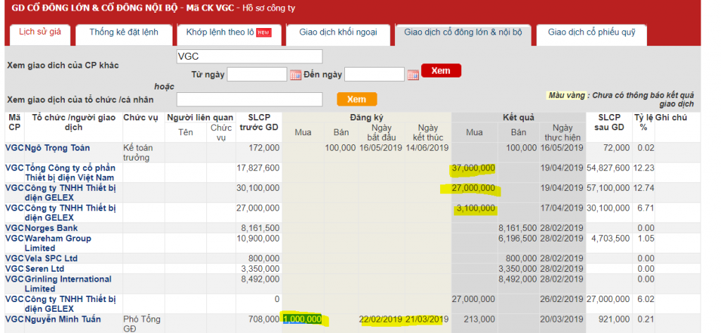 Chưa hết, VGC đang có sự mua vào mạnh mẽ của cổ đông lớn và ban lanh đạo