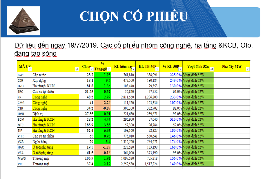 Nửa tháng sau ngày Offline ngày 20/7/2019, bạn đọc có thể đánh giá rõ hơn về hiệu quả của việc chọn cổ phiếu theo phong cách phù thủy Mark Minervini và CANSLIM.