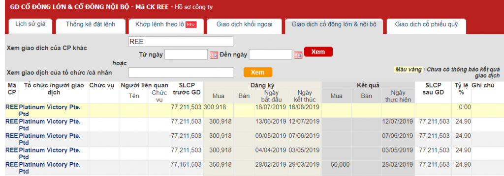 Cổ đông lớn Platinum Victory lại đang gom dần cổ phiếu REE. Một chữ I quá tốt trong CANSLIM
