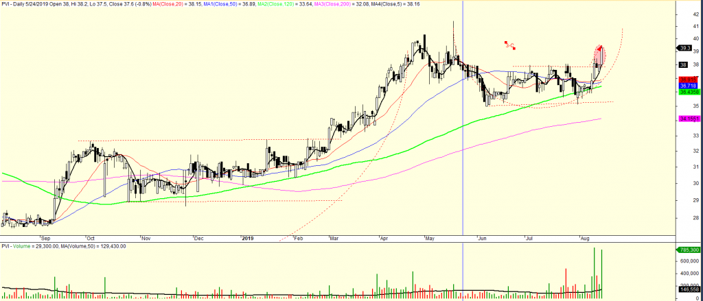 Đồ thị của PVI phiên ngày 14/8/2019 có điểm breakout mô hình 3C