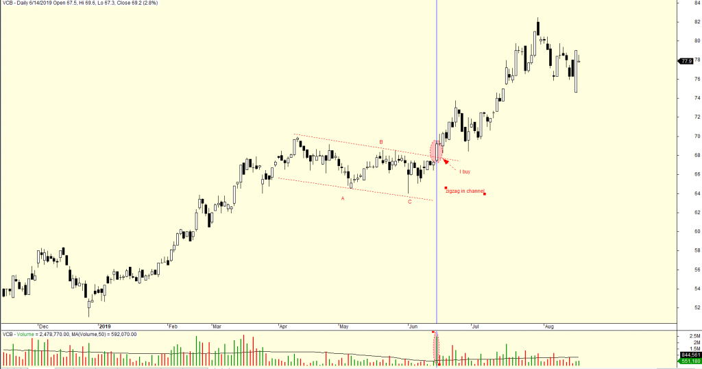 Ví dụ nhé. Tôi đã từng mua VCB ở giá 68 vào giữa tháng 6.2019 (sau đó bổ sung vị thế mua vào ngày 11/7/2019). Sau đó, VCB đã có giá trên 8x.