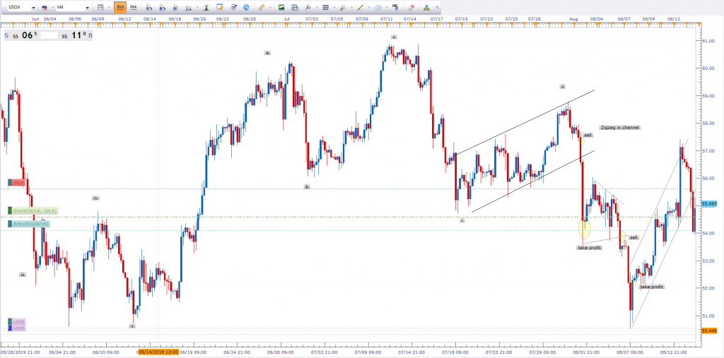 Còn đây là đồ thị giá dầu. Cũng là sóng zigzag trong kênh giá