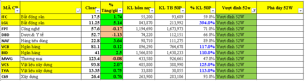 DANH SÁCH ĐỈNH 52 TUẦN CHO THẤY CÓ BA NHÓM NGÀNH ĐANG ĐÓNG VAI TRÒ DẪN DẮT: (1) BẤT ĐỘNG SẢN; (2) NGÂN HÀNG VÀ (3) VẬT LIỆU XÂY DỰNG. Đây là những nhóm ngành được hưởng lợi trực tiếp từ động thái giảm lãi suất của SBV.