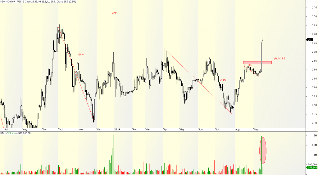 Các mã cổ phiếu bất động sản được chúng tôi khuyến nghị trong thời gian gần đây tiếp tục tăng mạnh. TDH đóng cửa gần sát với giá trần, khối lượng giao dịch tăng mạnh. Đây được xem như là điểm phá vỡ chính thức cho mẫu hình chiếc cốc-tay cầm. (xem lại: http://www.elibook.vn/2019/09/16/nhip-dap-thi-truong-16-9-2019-thi-truong-tang-nhe-tdh-thiet-lap-coc-tay-cam-kdh-mau-hinh-vcp.html/ )