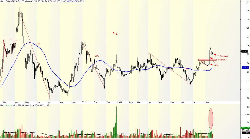 Không có nhiều thay đổi trong danh mục đầu tư của chúng tôi, ngoài trừ việc gia tăng tỷ trọng ở KDH ở phiên ngày hôm nay. Bạn đọc có thể xem lại đánh giá CANSLIM về KDH ở đây ( http://www.elibook.vn/2019/09/16/nhip-dap-thi-truong-16-9-2019-thi-truong-tang-nhe-tdh-thiet-lap-coc-tay-cam-kdh-mau-hinh-vcp.html/ )