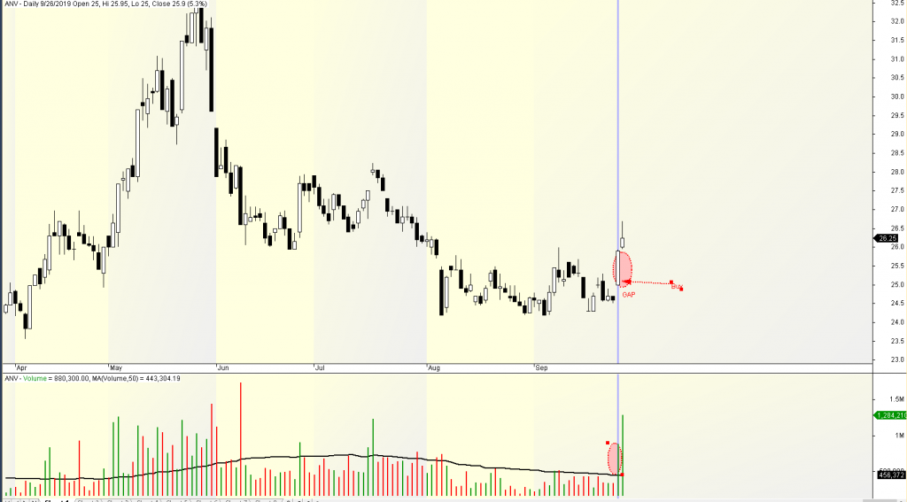 ANV có khoảng trống tăng giá trong phiên giao dịch ngày 26/9/2019 và chúng tôi thực hiện chiến lược mua ở đây