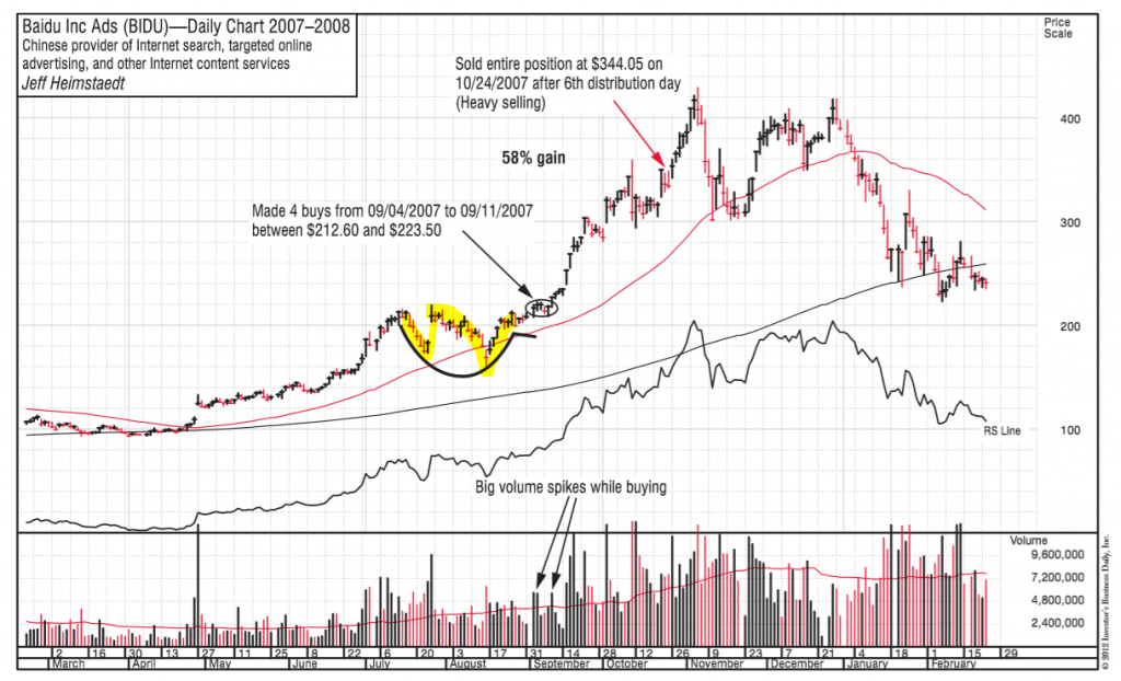 Cổ phiếu này sau đó tăng 58%. Jeff bán toàn bộ vị thế tại $344 vào ngày 24/10/2007 tại ngày phân phối thứ 6.