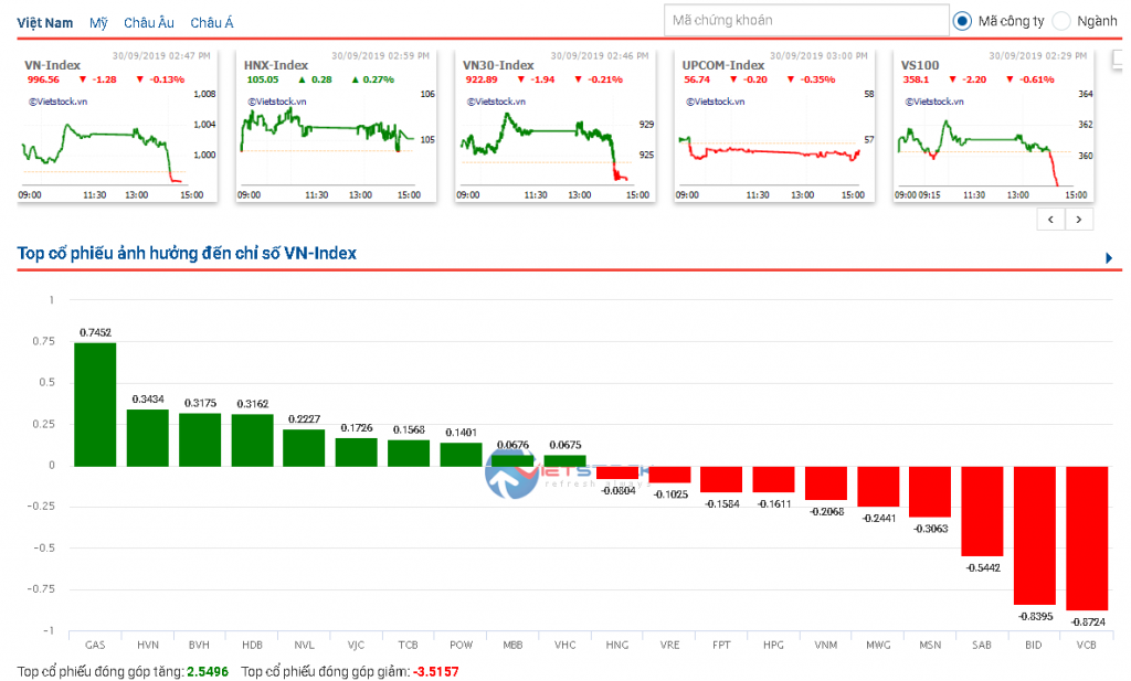 Lại một nữa VN-Index vẫn chưa qua được mức ngưỡng cửa tâm lý 1,000 điểm cho dù sáng nay trong phiên có lúc VN-Index đã vượt. VCB, BID bị bán mạnh cuối phiên khiến VN-Index thiếu lực hỗ trợ. Chỉ số VN-Index giảm nhẹ 0.13% trong khi thanh khoản cao hơn phiên hôm trước.