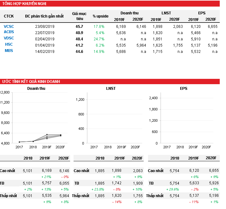 Nguồn VCSC (báo cáo tháng 8/2019): Chúng tôi duy trì khuyến nghị MUA và điều chỉnh tăng giá mục tiêu thêm 4,1% lên 45.700 đồng/CP cho CTCP Cơ điện lạnh (REE) do điều chỉnh tăng dự báo lợi nhuận giai đoạn 2020-2023 thêm trung bình 4,2% (tương ứng với tốc độ tăng trưởng kép – CAGR LNST giai đoạn 2019-2023 là 12,6%) nhờ giả định giá bán điện/giá cho thuê cao hơn tại các nhà máy điện và dự án văn phòng cho thuê mới. Chúng tôi điều chỉnh giảm 3,3% dự báo lợi nhuận 2019 còn 1,6 nghìn tỷ đồng (-8,5% YoY) do dự báo lợi nhuận thấp hơn