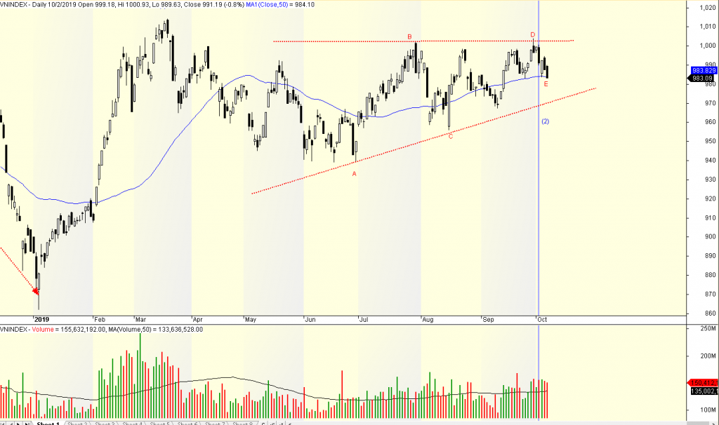 Chỉ số VN-Index vẫn đang sideway quanh MA50 ngày. Chỉ số VN-Index phiên hôm nay đóng cửa ngay MA50 ngày.