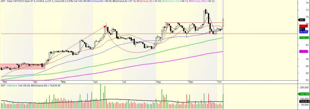 Chúng tôi đựa AST trở lại danh mục đầu tư tăng trưởng sau khi giá cổ phiếu phục hồi về điểm pivot của Nền Giá Phẳng. AST test đường MA50 ngày với khối lượng thấp và sau đó bật tăng với khối lượng cao là tín hiệu tích cực.