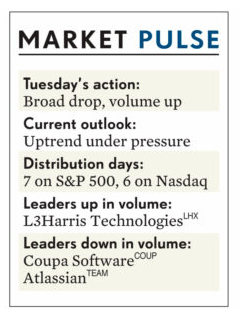 Chỉ số Nasdaq, SP500 giảm 1.7%, trong khi chỉ số Dow Jones giảm 1.2%. Khối lượng tăng trên cả ba sàn nên đây là một ngày phân phối. Tuy nhiên, vì ngày phân phối 3.9 bị loại bỏ khi thời gian trôi qua nên S&P500 vẫn có 7 ngày phân phối. Nasdaq có 6 ngày phân phối.