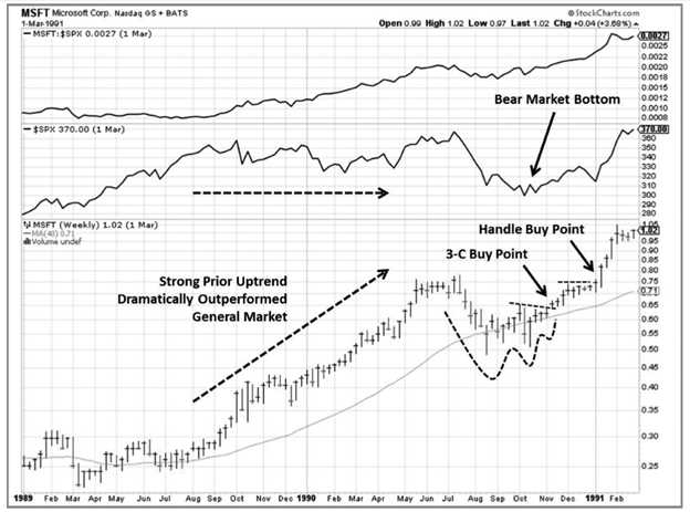Hình 7-17 Cổ phiếu Microsoft (mã MSFT) năm 1989-1990. Tăng 5,100% trong 9 năm.