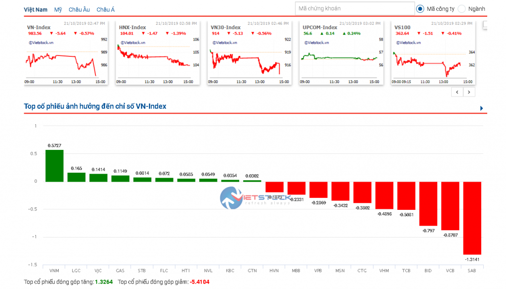 Nhóm cổ phiếu ngân hàng là nguyên nhân chính khiến cho thị trường giảm điểm trong phiên giao dịch ngày hôm nay. VCB, BID, TCB, VPB, MBB, VIB….đều rớt giá dù vừa công bố những khoản lãi lớn. Chỉ số VN-Index giảm 0.57% với khối lượng lớn hơn phiên trước nên đây là ngày phân phối.