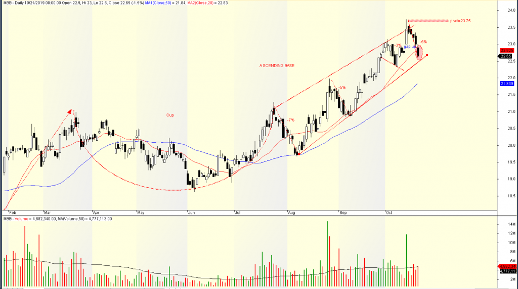 MBB đã lấp Gap Up và hiện đóng cửa dưới MA20 ngày nhưng với khối lượng ở mức bình thường. Giá đang có sự hỗ trợ từ đường xu hướng bên dưới. Nói chung, tình trạng của MBB cũng giống như nhiều mã cổ phiếu khác là: tình trạng nguy hiểm về khả năng gãy hỗ trợ.
