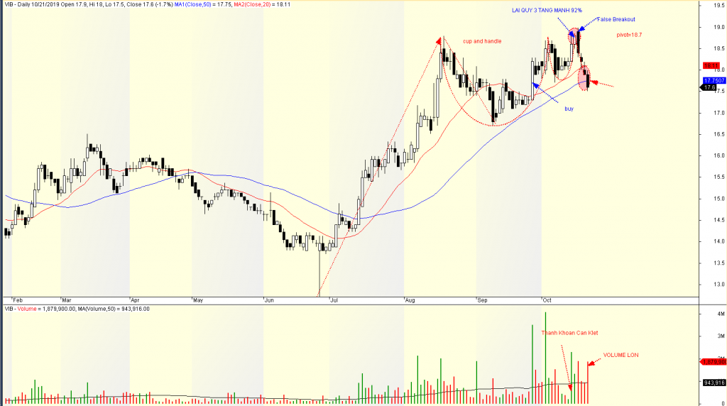 VIB thậm chí còn tệ hơn, giá đóng cửa dưới MA50 ngày với khối lượng lớn. VIB đã trở về giá mua của chúng tôi và hiện nay chúng tôi đang chờ xem phản ứng với đường MA50 để xem đây là “vi phạm” thật hay chỉ là “nhiễu”.