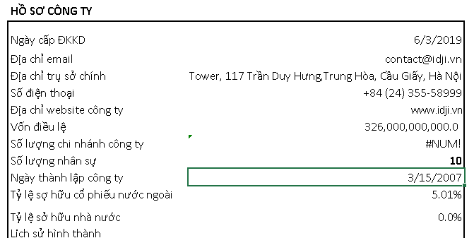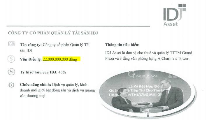 IDJ là một công ty mới thành lập vào năm 2007 với số lượng nhân sự chỉ… 10 người (số liệu từ Fireant). Từ số vốn 149 tỷ đồng lúc mới thành lập, hiện nay IDJ có vốn điều lệ 326 tỷ đồng. Với cơ cấu nhân sự đơn giản, chúng ta dễ thấy các vị trí lãnh đạotrong công ty đều là kiêm nhiệm.