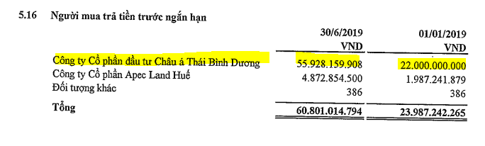 Khoản mục người mua trải tiền trước liên quan đến dự án Mũi Né cũng đã tăng 22 tỷ đồng vào đầu năm 2019 lên 56 tỷ đồng quý 2.2019 .