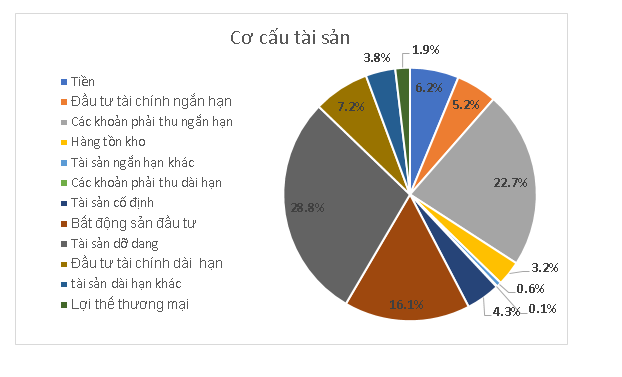 Số liệu báo cáo tài chính quý 2 cho thấy gần 28% tài sản của công ty nằm dưới dạng khoản phải thu ngắn hạn và 22% là tài sản dỡ dang.