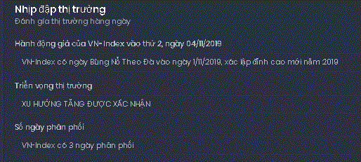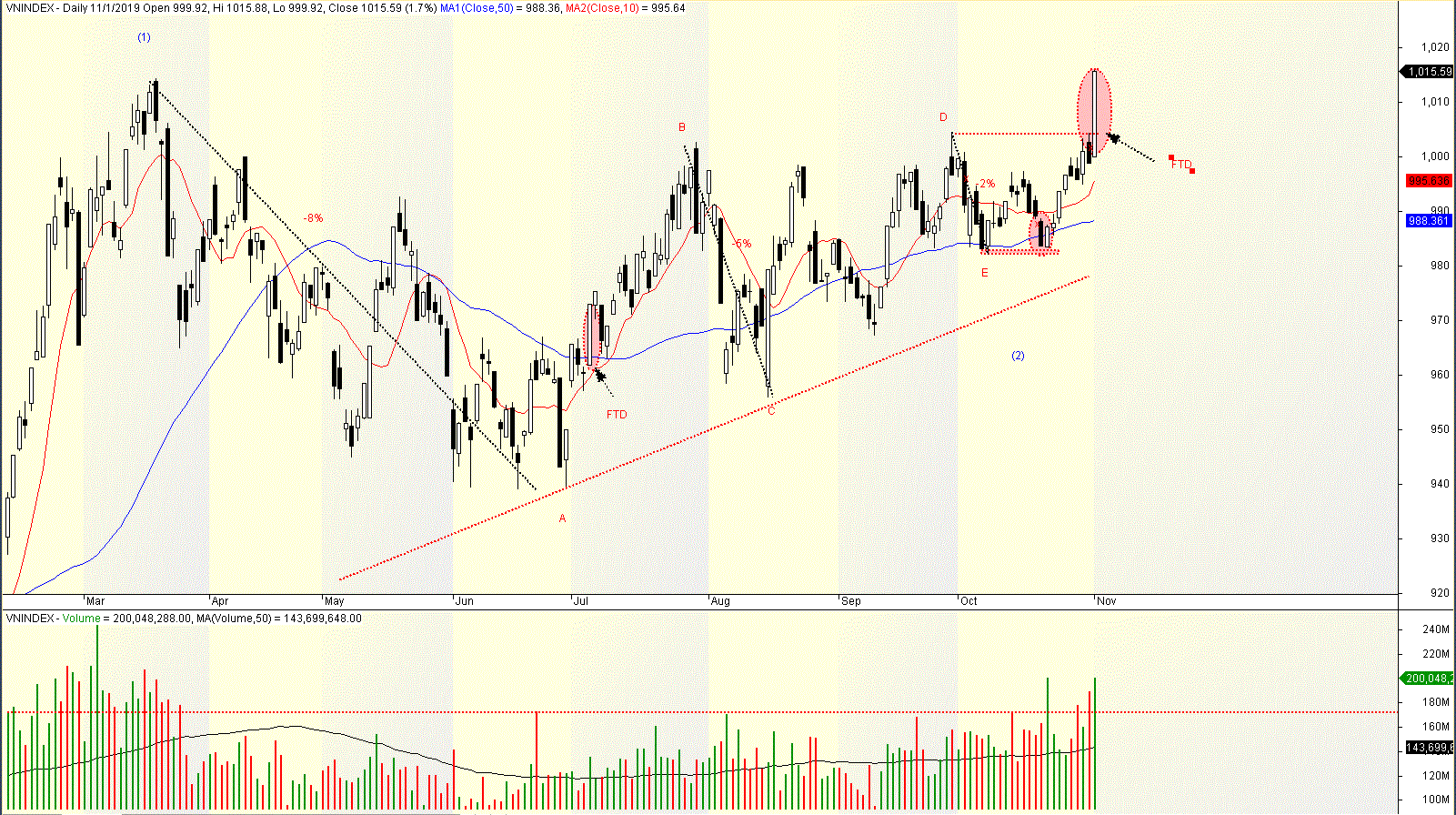 Ngày 1/11/2019, chỉ số VN-Index có ngày Bùng Nổ Theo Đà đưa triển vọng thị trường trở lại “XU HƯỚNG TĂNG ĐƯỢC XÁC NHẬN”.