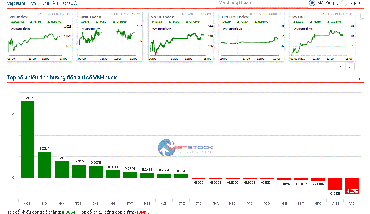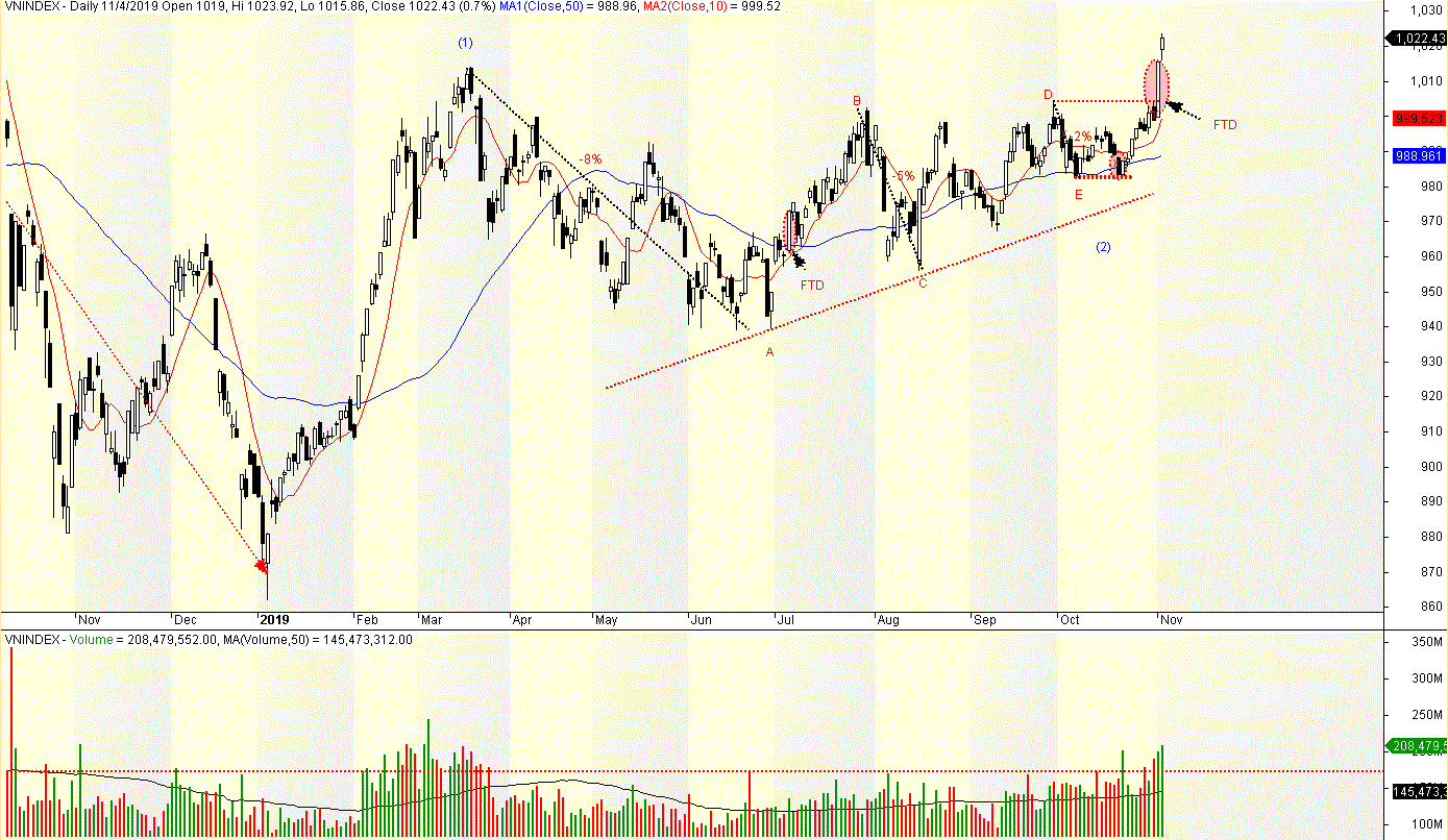 Sau phiên Bùng Nổ Theo Đà ngày 1/11/2019, chỉ số VN-Index tiếp tục tăng điểm nhờ lực đẩy của nhóm Bluechip.