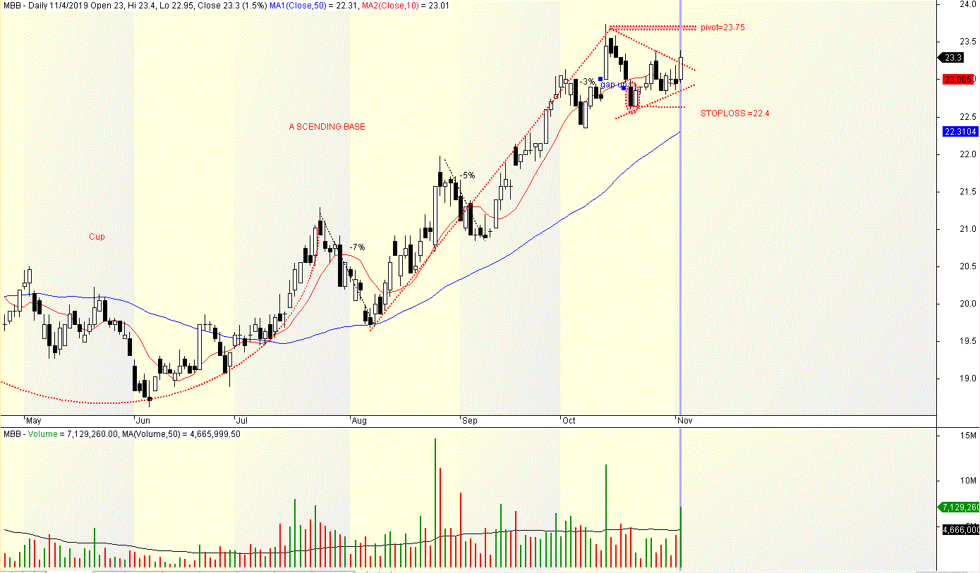 Cổ phiếu HDG và MBB có điểm mua theo kỹ thuật PK techniques, một kỹ thuật mua sớm trước điểm breakout của khóa học Trend Trader. MBB trước đó đã có điểm mua theo Gap Up.