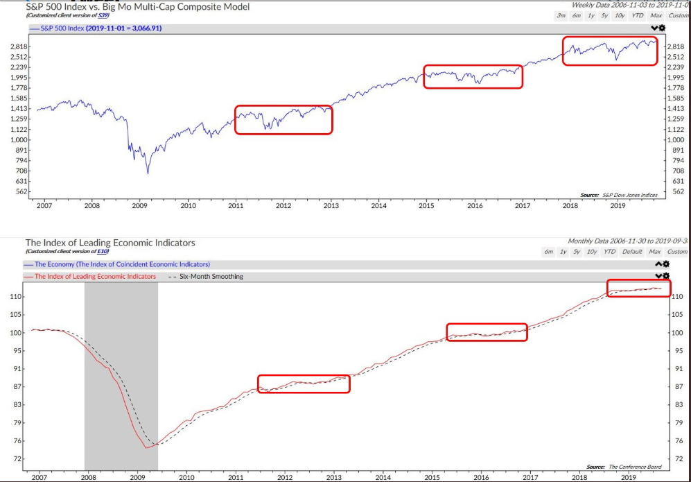 Những gì chúng ta đang trải nghiệm chẳng có gì mới. Trong suốt các thị trường tăng giá, thường có ba lần mà chỉ báo LEI (Leading Economic Indicator)- (chỉ báo tiên đoán trước về kinh tế) phẳng ra và thu nhập của các công ty trong chỉ số SP500 chậm lại. Thị trường đã điều chỉnh và sau đó củng cố, tích lũy, rồi tiếp tục tăng tốc trở lại. vâng, điều này có thể diễn ra một lần nữa!