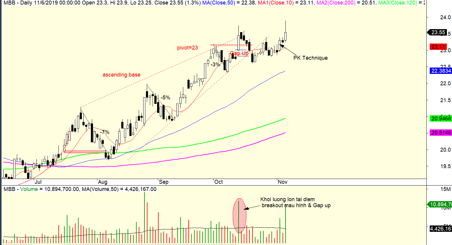 Cổ phiếu MBB tăng điểm đúng như kỳ vọng sau khi có thông tin tích cực về lợi nhuận trước thuế tháng 10.