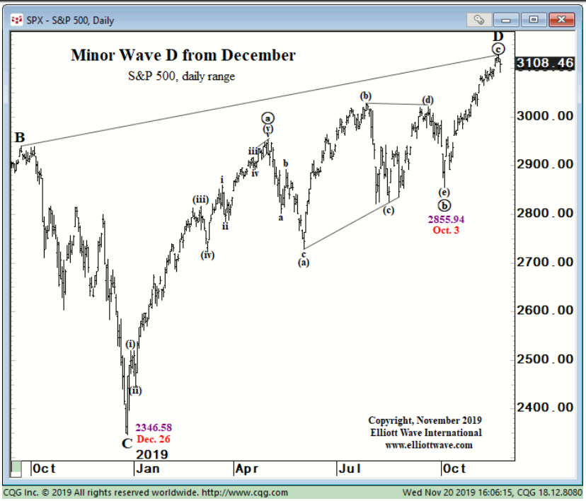 Ngày 19/11/2019, chúng tôi cảnh báo khả năng Dow Jones và SP500 hoàn tất sóng v và đảo chiều