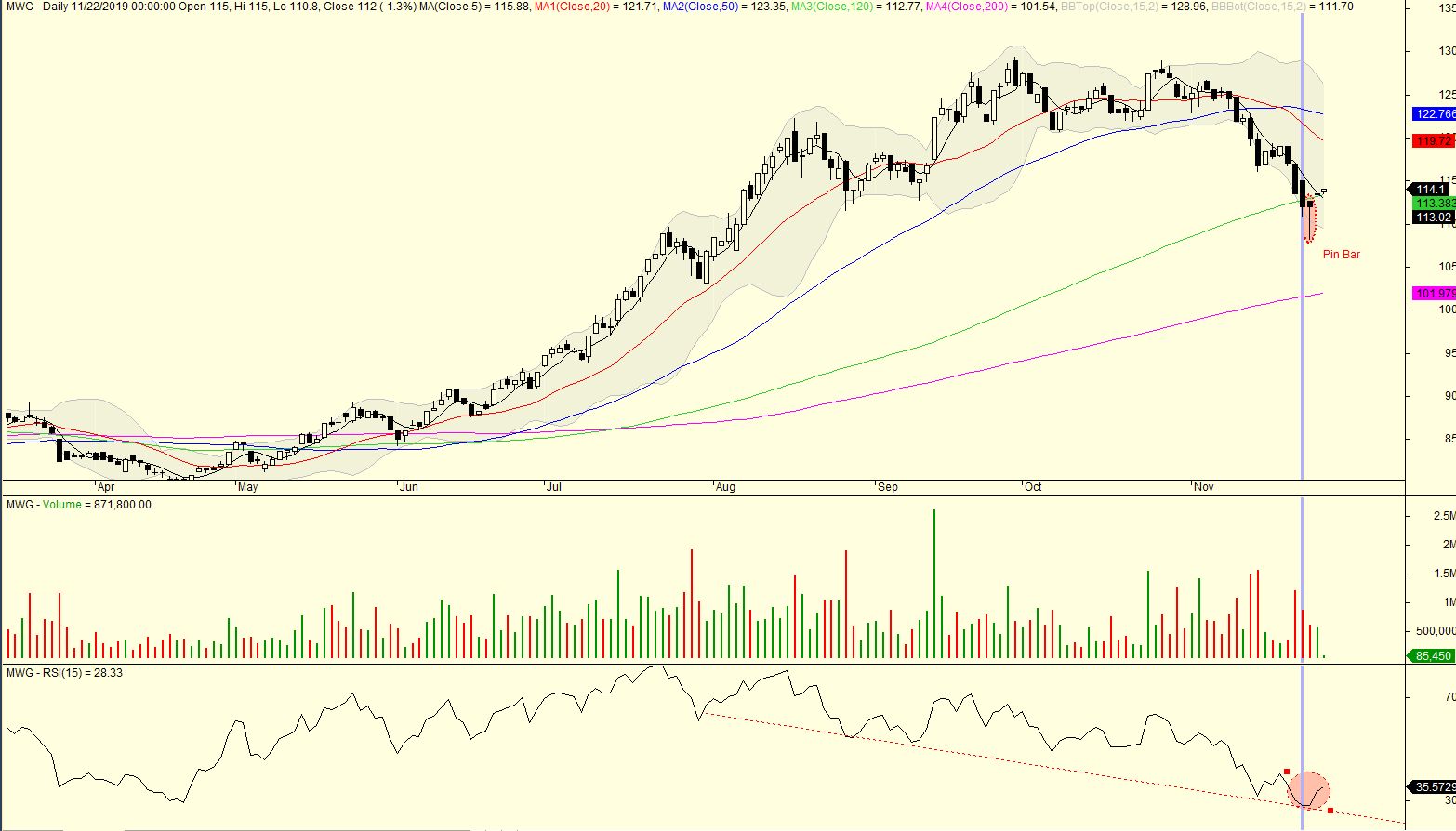 • MWG có hỗ trợ bởi MA120 ngày, Pin Bar.