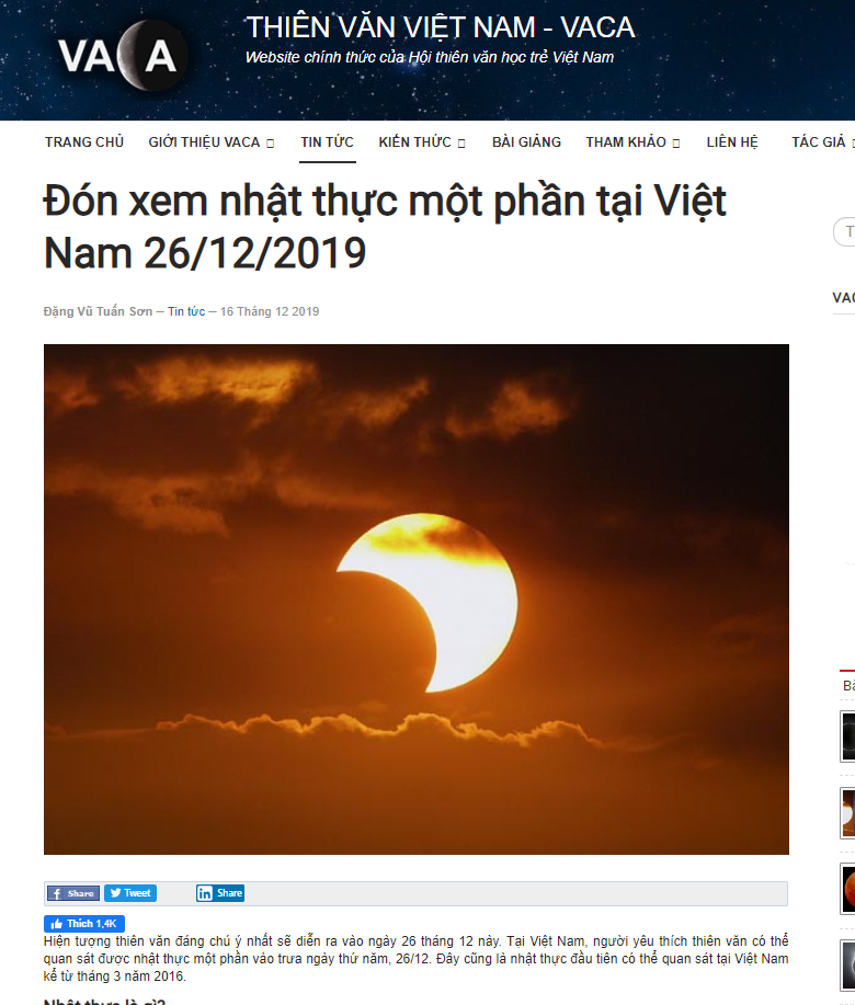 Ngày 26.12.2019 Nhật Thực một phần: Quan sát điều gì xảy ra với VN-Index