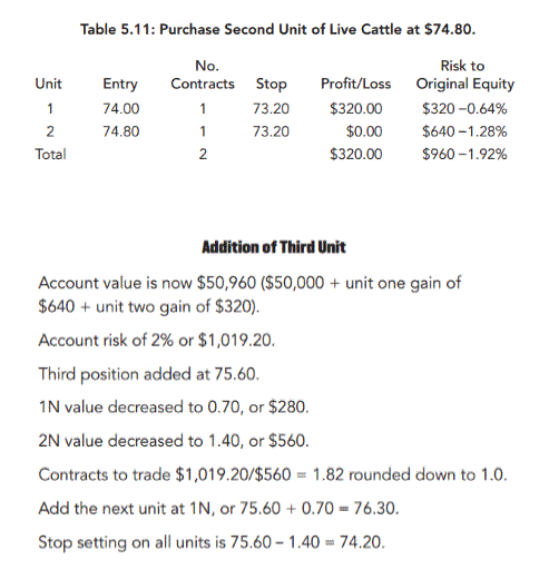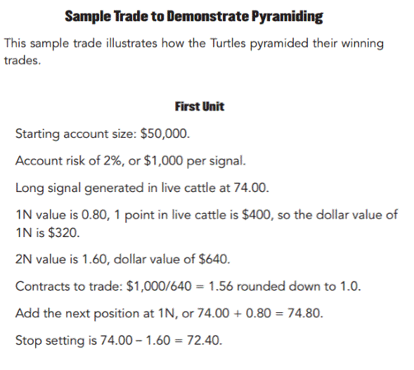 Tôi giới thiệu cách mà nhóm Turtle bổ sung bị thế. Theo nhóm Turtle, họ sẽ bổ sung vị thế nếu như thị trường tăng đúng như trend của họ và có một mức giá chênh lệch 1N so với giá mở vị thế ban đầu. 1N chính là 1 ATR.