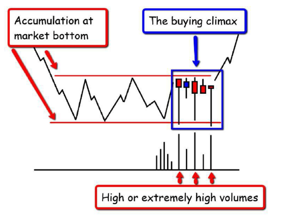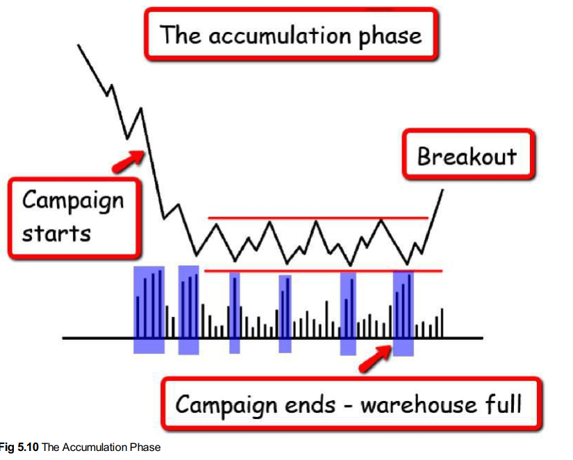 Trong quá trình tích lũy, bạn sẽ thấy một số phiên tăng mạnh với khối lượng lớn là hành động gom hàng của các nhà đầu tư lớn chuyên nghiệp