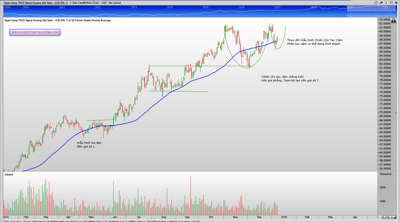VCB tăng giá và giành lại MA50 ngày với khối lượng khá tốt. Điều này mở ra khả năng hình thành phần tay cầm của mô hình Chiếc Cốc-Tay Cầm.