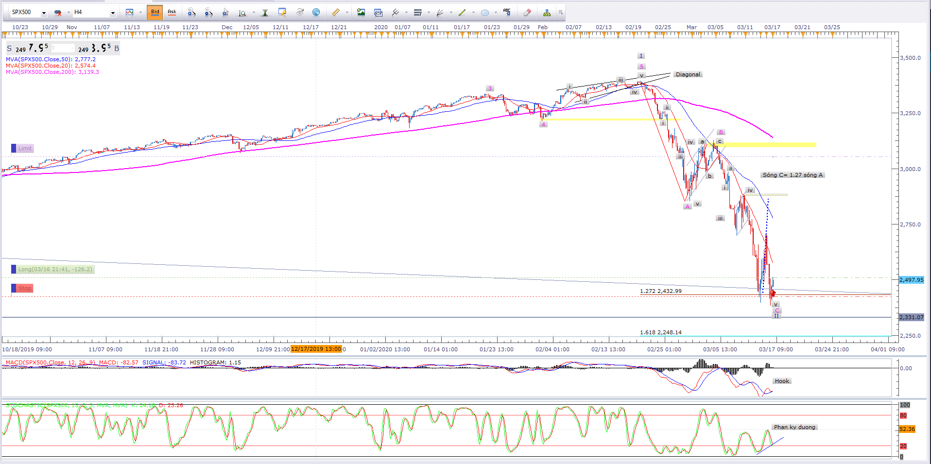 Trên đồ thị H4, chúng tôi thấy chiều dài sóng C bằng 1.27 lần chiều dài sóng A. Sóng C bao gồm năm sóng như hình dưới. Nếu thị trường hồi phục, thì mức giá mục tiêu là 2800 và 3100.
