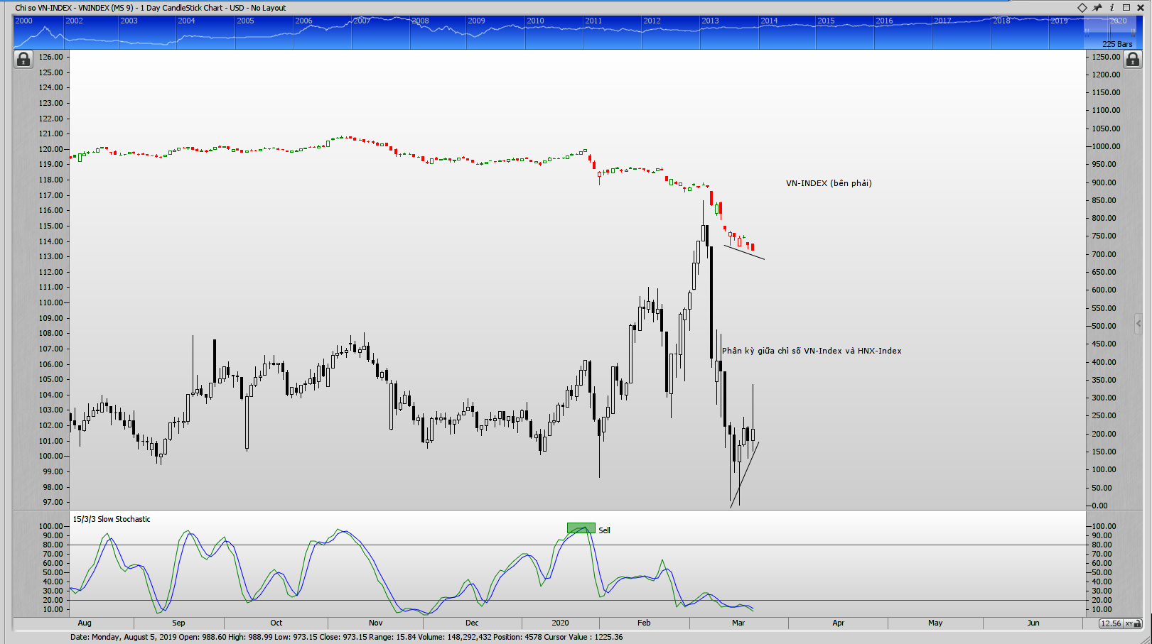 Tại Việt Nam, chúng ta đang có sự phân kỳ giữa chỉ số VN-Index và HNX-Index, một trong những dấu hiệu tạo đáy theo WIlliam O’Neil và Raymond Merriman. Cả Việt Nam và Mỹ đang đứng trước thời điểm tạo đáy chu kỳ 50 tuần. Theo quy tắc 8 tuần, nếu như đáy 50 tuần được tạo lập, giá sẽ tăng ít nhất 7-8 tuần sau đó (gần 2 tháng).
