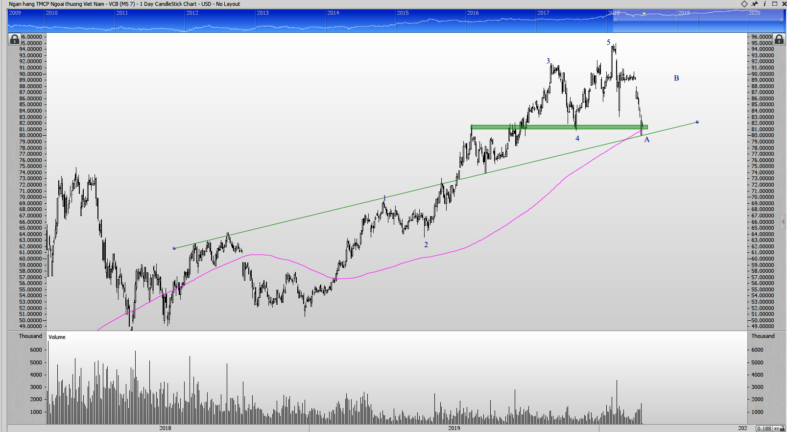 VCB có mẫu hình nến đảo chiều Morning Stars và đang giữ được giá, không bị tạo đáy mới trong khi Index tạo đáy mới.