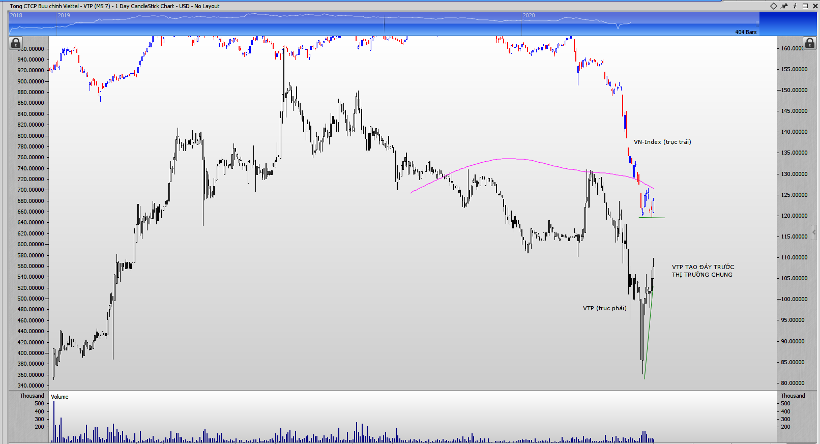 - VTP đang tạo đáy trước VN-Index, dấu hiệu cổ phiếu mạnh hơn thị trường